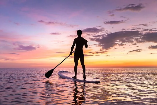 Starte deine Sunset SUP Tour in Marbellas lebhafter Marina mit einem sympathischen lokalen Guide, der dir zuerst die Basics zeigt, bevor es auf ruhiges Mittelmeerwasser geht. Freu dich auf Spaß, wackelige Momente, Bergblick und einen entspannten Drink im Hafen, wenn die Dämmerung einsetzt – hier geht’s nicht um Perfektion, sondern um das echte Marbella-Feeling am Abend.