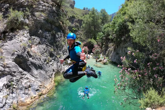 Du kletterst über wilde Kalksteinpfade oberhalb von Otívar, bevor du mit einem lokalen Guide in die kristallklaren Pools des Rio Verde rutschst, springst und abseilst. Freu dich auf Spaß, sichere Abenteuer und kleine Momente mit der andalusischen Natur – inklusive kompletter Ausrüstung, damit du dich voll aufs Erlebnis konzentrieren kannst.