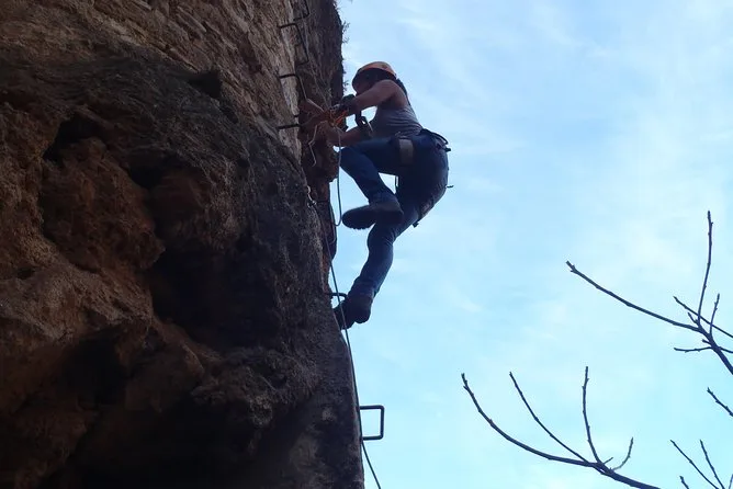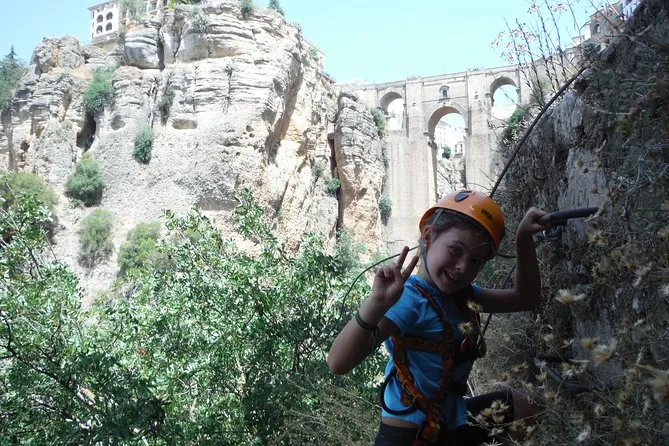 Das Erste, was mir auffiel, war die frische Morgenluft, die aus dem Canyon heraufzog. Unser Guide trafen wir direkt unterhalb der alten Stadtmauern – er verteilte Gurte und Helme und brachte alle mit einem Witz über „Helmfrisuren“ zum Lachen, was sofort für gute Stimmung sorgte. Die Eisenstufen wirkten erst ziemlich einschüchternd, aber ehrlich gesagt fühlt man sich sofort sicher, sobald man sich eingehängt hat. Man hört die Vögel, die von den Felsen widerhallen, während man hochklettert, und alle paar Meter eröffnet sich ein neuer Blick auf die Puente Nuevo – viel beeindruckender als jede Postkarte.
