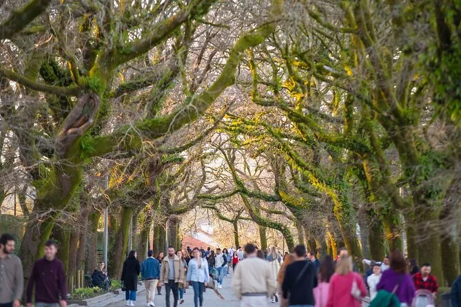 Ich hätte nicht gedacht, dass ich beim Schlendern durch die Plätze rund um die Kathedrale so viel fühlen würde – es ist gleichzeitig laut und still, wenn man so will. Kinder jagten Tauben, während irgendwo in der Nähe galicische Dudelsäcke spielten. Für mich war der Höhepunkt der Besuch im Alameda Park; Li ließ uns dort kurz verweilen, und ehrlich gesagt, dieser Blick auf die Kathedraltürme durch die Bäume hat sich tief eingeprägt. Ich versuchte ein Foto zu machen, doch es wirkt nie so eindrucksvoll wie in echt.