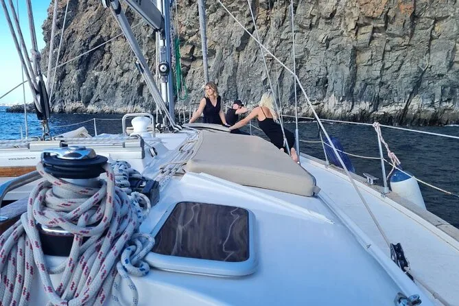 Wir trieben entlang der Südküste, nur elf von uns, ausgestreckt auf Kissen oder an den Relings lehnend. Das Wasser hier ist so klar, dass man silberne Fischschwärme darunter blitzen sieht. Einmal roch ich gegrillte Sardinen von einem nahegelegenen Fischerboot – das erinnerte mich daran, wie nah man hier dem echten Inselleben ist.