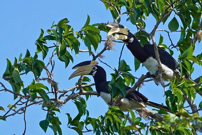Du kannst Leoparden, Elefanten, Bären, Krokodile, Hirsche, Wildschweine, Wasserbüffel und viele Vogelarten wie Pfauen und Bienenfresser entdecken.