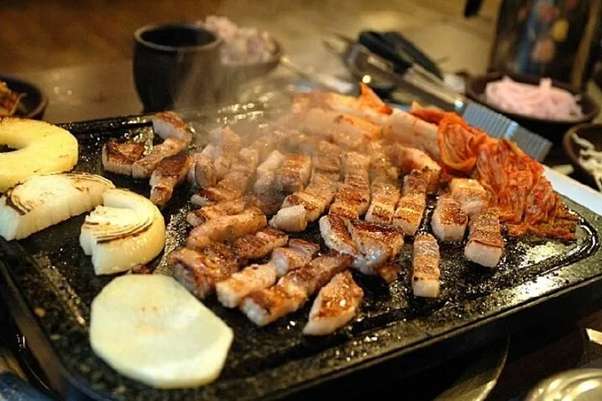 Der Guide empfiehlt lokale Restaurants, zum Beispiel Bulgogi-Menüs oder koreanische Nudeln.