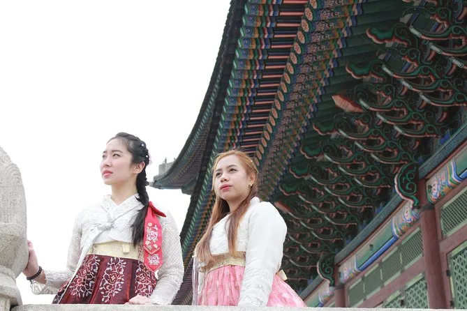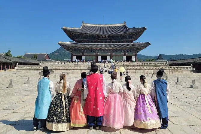 Dein Tag startet mit Abholung und Rückfahrt im klimatisierten Fahrzeug, inklusive Eintritt zu Highlights wie Gyeongbokgung (mit optionaler Hanbok-Ausleihe), einem englischsprachigen Guide, der dich zu beliebten lokalen Restaurants führt – dazu Zeit, Märkte und Viertel in deinem Tempo zu entdecken, bevor es bequem zurückgeht.
