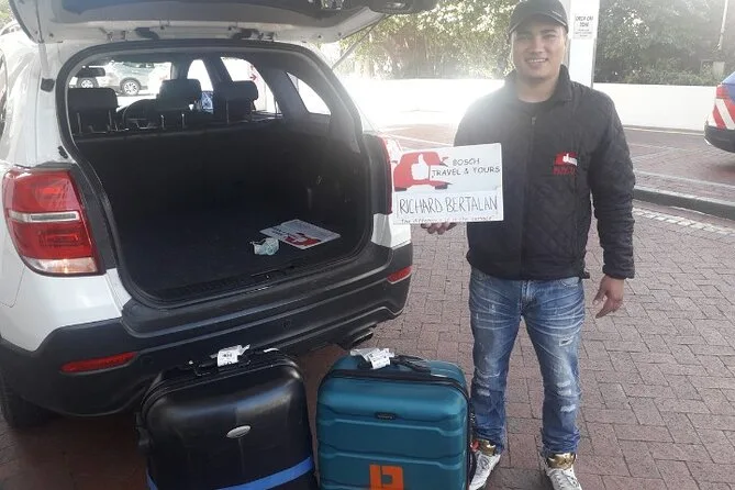 Am Cape Town International Airport wirst du von einem lokalen Fahrer mit Namensschild empfangen, bekommst Hilfe mit deinem Gepäck und fährst direkt in einem klimatisierten Auto zu deinem Hotel oder Airbnb. Unterwegs hörst du spannende Geschichten aus der Stadt von jemandem, der hier lebt – und vielleicht lachst du sogar über deine eigene Aussprache von „Muizenberg“. Ein entspannter Start, der deine Reise perfekt einläutet.