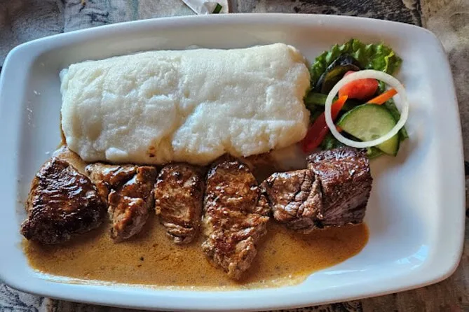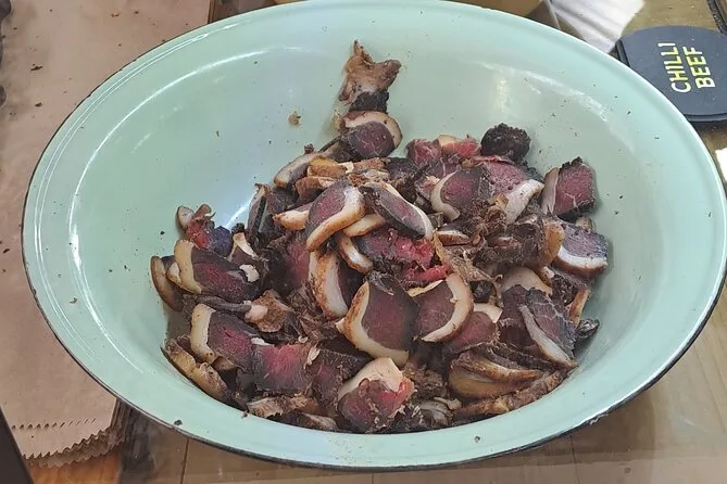 Du probierst Gerichte wie Bobotie, Samoosas, Tomato Bredie, Biltong, Gatsby Sandwiches, Braai-Fleisch, Koeksisters und mehr.