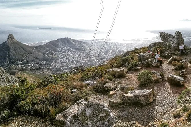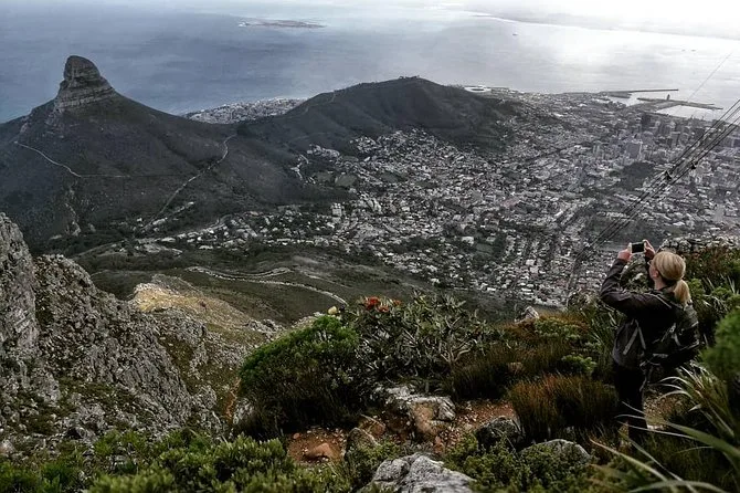 Der Anfang war geprägt von großen Felsen und schattigen Stellen, doch dann kamen schmale Kanten, an denen man sich mit den Händen abstützen musste – Schuhe suchten Halt auf rauem Stein. Sipho zeigte uns, wie man die Füße richtig einsetzt (ich sah bestimmt albern aus). Er erzählte Geschichten über die Geschichte des Bergs, wie die Einheimischen manche Pflanzen anders nennen, und zeigte uns die kleinen Klippschliefer, die sich auf den Steinen sonnten. Ein Moment, in dem der Wind auffrischte, und ich den salzigen Geschmack des Meeres spürte, obwohl wir hoch oben waren. Oben ist es erstaunlich still, nur dein eigener Atem ist zu hören.