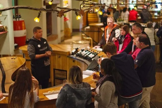 Dein Tag umfasst den Hoteltransfer in Kapstadt, bequemen Minivan-Transport mit deinem lokalen Guide Sipho (oder einem ebenso freundlichen Begleiter), zwei geführte Weinverkostungen in Stellenbosch mit Käse-, Biltong- oder Schoko-Pairings (auch vegane Optionen), Zeit zum Bummeln durch Dorp Street und De Braak Street mit historischer Architektur – und wenn du möchtest, kannst du vorab ein optionales Diamanterlebnis buchen, bevor es zurück in die Stadt geht.