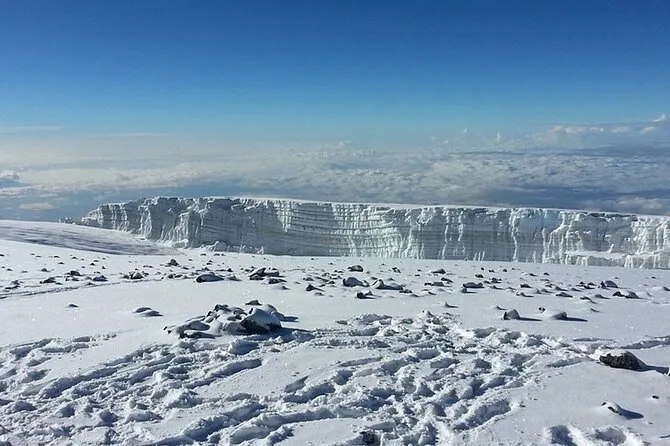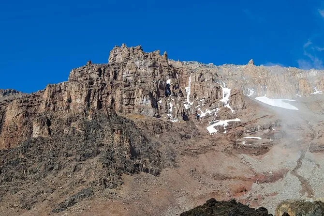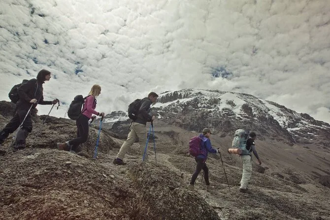 Am nächsten Morgen im Shira Camp war meine Wasserflasche über Nacht komplett gefroren (darauf hatte mich keiner vorbereitet), und die Luft brannte in meiner Nase. Die Sonne stieg schnell über das Plateau, und plötzlich sah man die Gletscher des Kibo in weiter Ferne – so nah zum Greifen, und doch unerreichbar. Der Aufstieg zum Lava Tower war hart; überall Felsen, und mein Kopf begann auf halber Strecke zu pochen. Joseph merkte es sofort und sagte immer wieder „Pole pole“ – langsam, langsam. Am Abend im Barranco Camp saß ich einfach vor meinem Zelt und starrte auf die Barranco-Wand im seltsamen goldenen Licht. Ich sprach kaum, jeder schien in seinen eigenen Gedanken versunken.