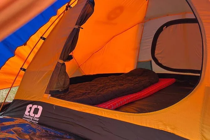 Du schläfst in Zelten, die von den Trägern gestellt werden; Hütten gibt es auf der Machame Route nicht.