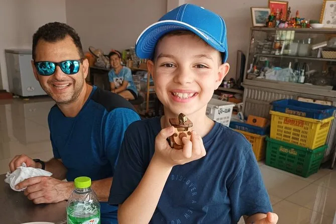 Mittagessen gab es in einem kleinen Lokal nahe dem Pak Klong Talad Blumenmarkt – nichts Besonderes, einfach gebratenes Hähnchen mit Basilikum und Reis, aber nach dem ganzen Laufen schmeckte es besonders gut. Der Markt roch nach frischen Stielen und feuchter Erde; die Verkäufer banden Orchideen schneller, als ich zählen konnte. Ein alter Mann flocht Jasmingirlanden und lächelte, als ich versuchte, seinen Namen zu erfragen (ich habe ihn nicht ganz richtig verstanden). Zum Abschluss besuchten wir das Artist House am Klong Bang Luang – ein ruhiger, bunter Ort, wo lokale Kinder gerade ein Puppentheater vorbereiteten. Ich denke noch oft an diesen Moment am Wasser, auf den mit Farbe beklecksten Bänken, ohne Eile zu gehen.