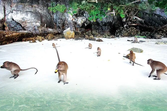 Die Tour führt zu Maya Bay, Pileh Lagoon, Viking Cave (nur vorbei), Monkey Beach, Phi Phi Don zum Mittagessen und endet auf Khai Island.