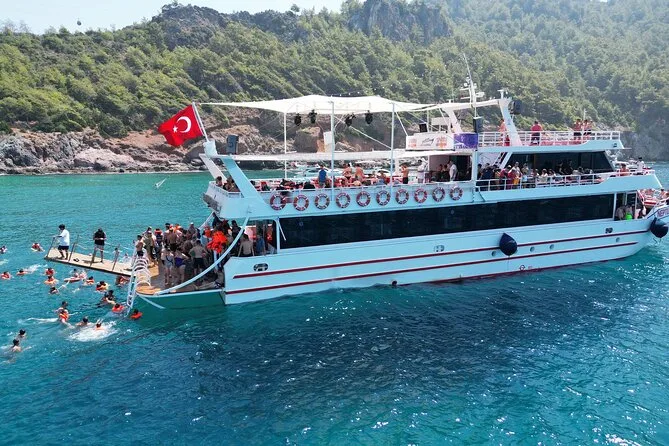 Dein Tag umfasst kostenlosen Hoteltransfer innerhalb Alanyas (wenn bei Buchung gewählt), ganztägige Nutzung eines komfortablen Doppeldeckerboots mit Sonnenliegen, unbegrenzte Softdrinks während der Fahrt, frisch zubereitetes Mittagessen an Bord nach der zweiten Badepause sowie den Rücktransport zum Hotel am späten Nachmittag.