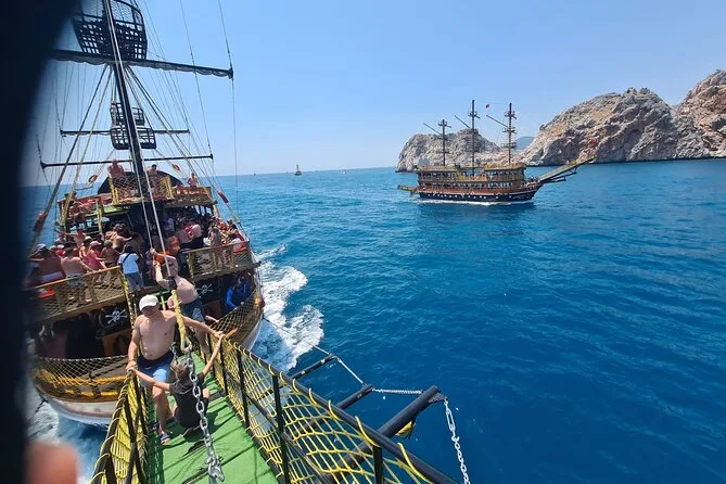 Steig an Bord eines echten Piratenschiffs in Alanya für einen spaßigen Tag auf See mit Familie oder Freunden. Schwimme am Cleopatra-Strand, entdecke Meereshöhlen, feiere eine Schaum-Party und genieße ein einfaches Mittagessen an Bord. Mit Hoteltransfer und freundlichen Guides erlebst du unvergessliche Momente mit Salz in den Haaren.