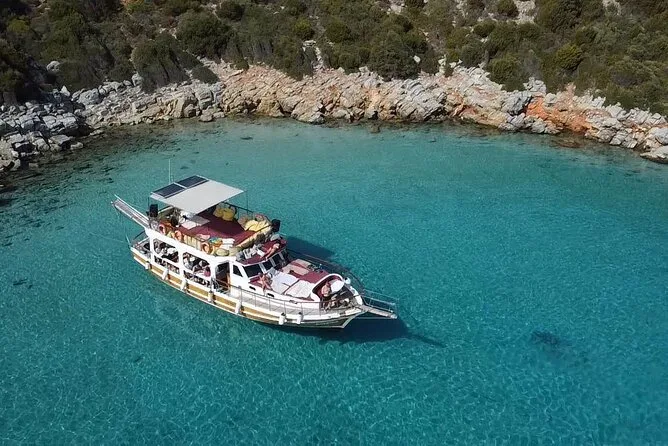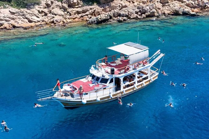 Dein Tag umfasst mehrere Badepausen rund um Bodrum und Orak Insel, Mittagessen an Bord mit Teezeit und Begleitung von Einheimischen, die die Gewässer bestens kennen – einfach Badesachen mitbringen und entspannt aufs Meer hinaus.