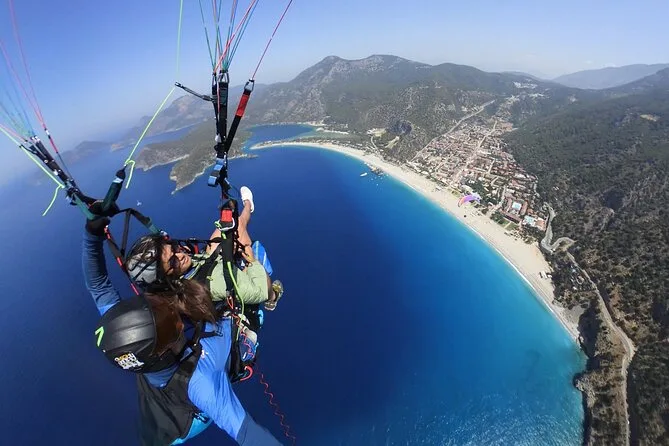 Du fährst mit deinem Piloten von Fethiye hoch zum Babadağ und startest dann gemeinsam in die Luft über Ölüdeniz Beach – ein Tandem-Gleitschirmflug, der dich sanft über türkisblaues Wasser trägt. Die kühle Bergluft im Gesicht, alles nötige Equipment inklusive und auf Wunsch ein Video von deinem Flug als Erinnerung. Dieser erste Schritt bleibt dir garantiert im Kopf.