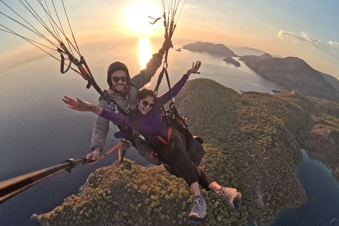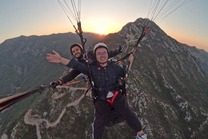 Dein Tag startet mit dem Transport von Fethiye zum Babadağ in einem klimatisierten Fahrzeug. Die erfahrenen Piloten stellen dir die komplette Gleitschirmausrüstung. Nach dem Flug zur Oludeniz-Strandlandung bekommst du Snacks und Kaffee oder Tee, während du Fotos und Videos anschaust – keine versteckten Kosten.