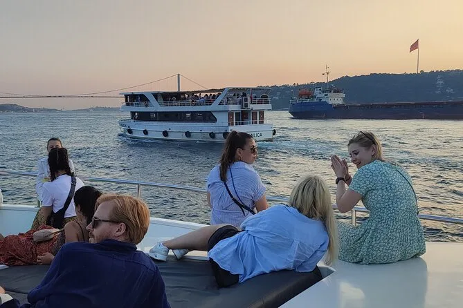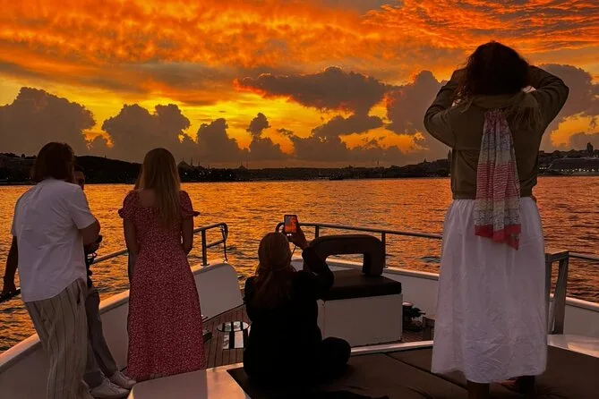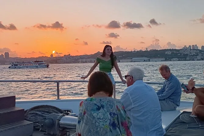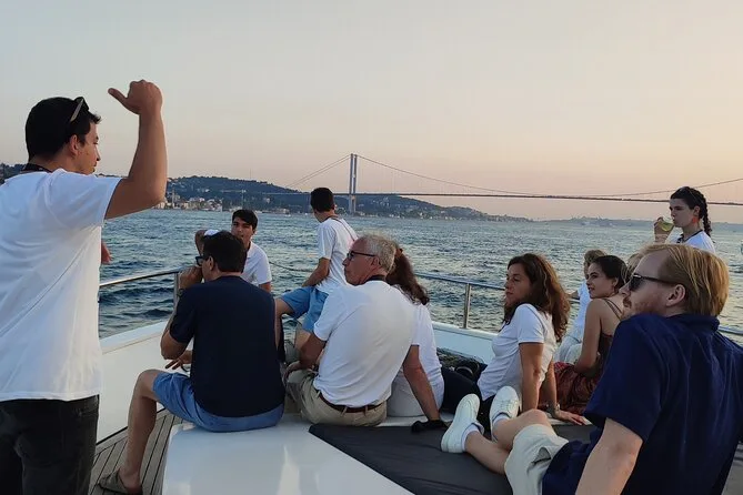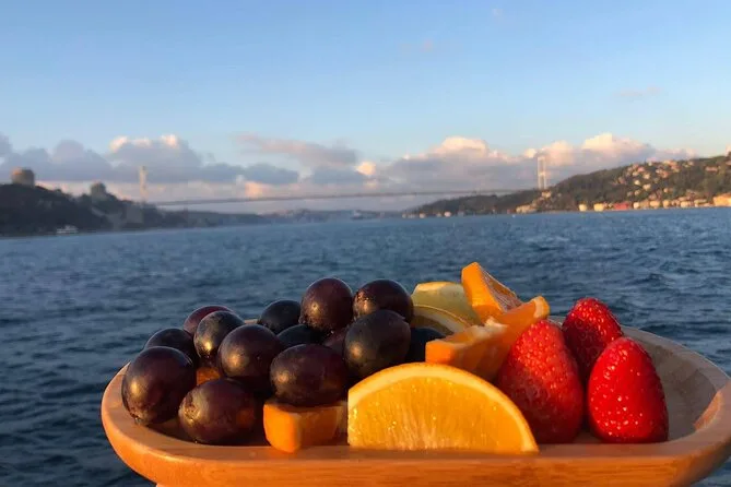 Dein Abend beginnt mit dem Einsteigen auf eine luxuriöse Yacht am Kabataş-Pier, begleitet von einem erfahrenen Guide, der Geschichten entlang der europäischen und asiatischen Ufer Istanbuls erzählt. Du bekommst Obstplatten, leckeres Baklava und Kekse sowie kostenlose Getränke wie hausgemachte Minzlimonade oder türkischen Tee serviert, während du die Aussicht auf Paläste und Türme genießt. Zum Abschluss kehrst du zurück zum Ausgangspunkt, während die Stadt langsam in der Nacht versinkt.
