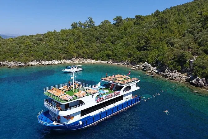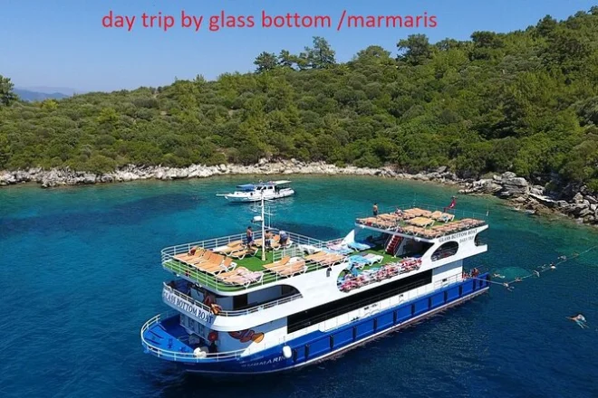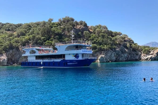 Erlebe einen Tag auf Marmaris Buchten mit dem Glasbodenboot und einem lokalen Guide. Sieh Fische unter deinen Füßen, schwimme im klaren Wasser, besuche die Wunschhöhle und genieße dein Mittagessen an Deck. Unvergessliche Momente zwischen altem Stein und stillem Meer erwarten dich.