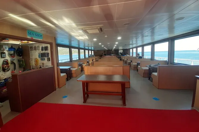 Dein Tag beinhaltet eine umfassende Passagier-Versicherung, Mittagessen an Bord nach den Schwimmstopps, Nutzung der Sonnenliegen zum Entspannen zwischen Besuchen von Marmaris Schloss und den umliegenden Inseln sowie die Begleitung durch die lokale Crew während deines halbtauchfähigen Abenteuers. Rückkehr zum Hafen am späten Nachmittag.
