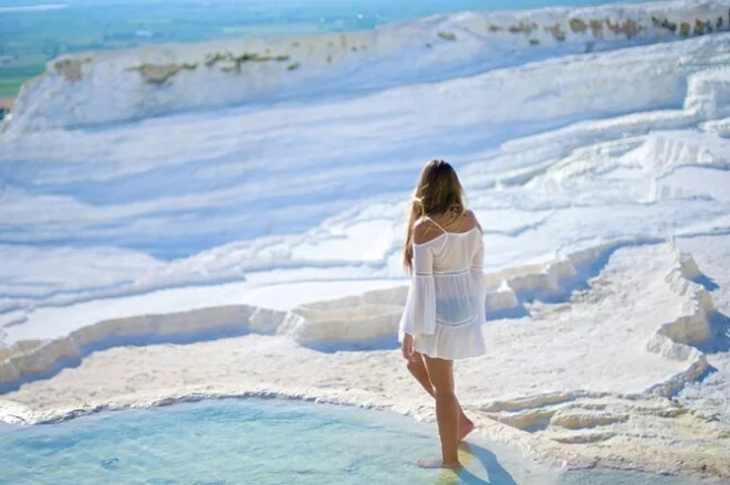 Sie haben etwa drei Stunden Zeit, um die Terrassen von Pamukkale und Hierapolis auf eigene Faust zu erkunden.