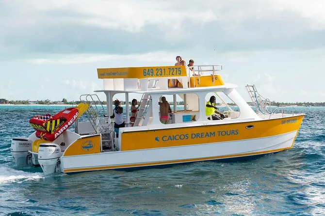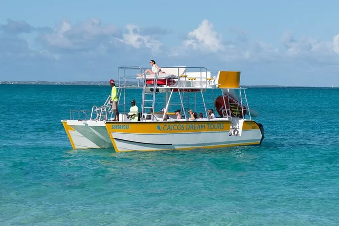 Dein Tag beinhaltet Hotelabholung und Rückfahrt in Providenciales, eine Führung durch einen lokalen Experten während der privaten Tour, unbegrenzte Getränke an der Open Bar, alle Steuern und Gebühren sowie Snacks und Mittagessen an Deck – dazu jederzeit Schnorchelausrüstung.