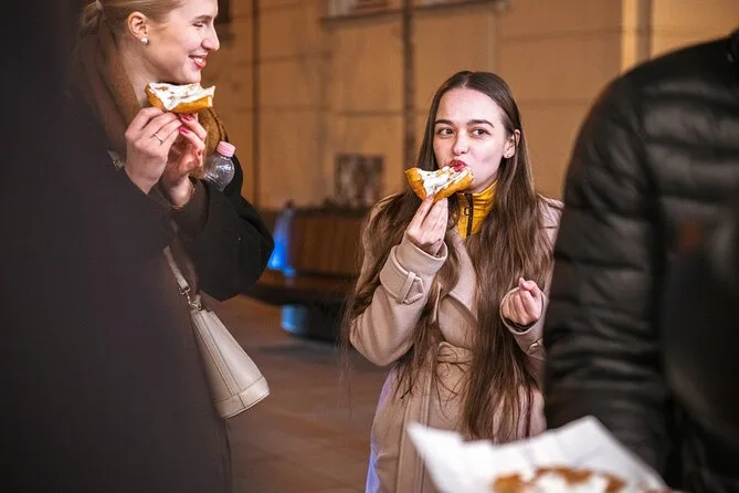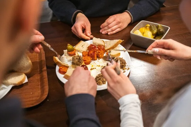 Dein Abend umfasst über 14 Verkostungen – von Wurst in einer beliebten Metzgerei bis Gulasch im Lokal – plus Street Food Stopps für Langos und Baumstriezel auf der Váci Straße. Genieße ungarische Weine oder Palinka (auch alkoholfrei), Nachtisch in einer gemütlichen Taverne, alle Gebühren und Steuern sind inklusive – und spezielle Ernährungswünsche kannst du vorher anmelden.