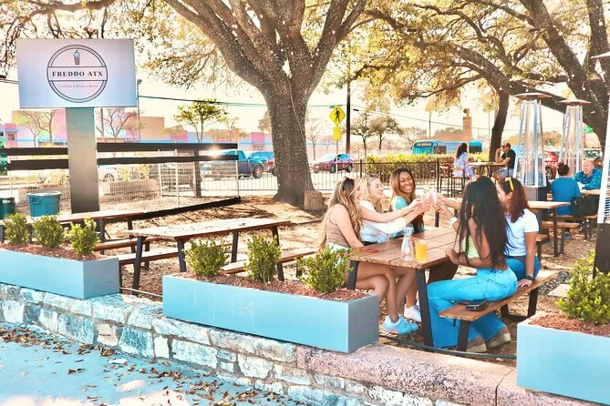 Dein Tag umfasst Fahrten zu Austins Top-Murals im offenen Partybus mit LED-Beleuchtung und Soundsystem, Gruppenfotos bei jedem Stopp durch deinen lokalen Guide, eine Pause für Kaffee oder Mimosas im Freddo ATX Café in South Congress (Getränke nicht automatisch inklusive) sowie Kühlboxen an Bord für eigene Getränke.