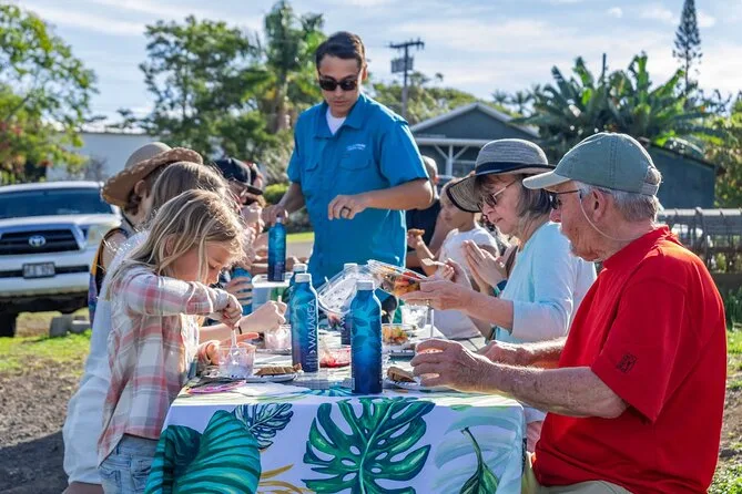 Dein Tag umfasst Abholung und Rückfahrt vom Hotel in Kona oder Umgebung, geführte Verkostungen bei Greenwell Farms für Kona Kaffee-Fans, ein Picknick im Deli-Stil im Freien, einen Stopp in einer lokalen Bäckerei für frische Backwaren (unbedingt Malasadas probieren), Zeit am Punaluʻu Black Sand Beach mit Schildkrötenbeobachtung, eine persönliche Führung durch die vulkanischen Landschaften des Hawaii Volcanoes National Parks mit zertifizierten Guides, die Geschichten erzählen, die du sonst nirgends hörst – und zum Abschluss ein dreigängiges Abendessen aus regionalen Zutaten im Kilauea Lodge, bevor du entspannt zurückfährst, mit Snacks und Getränken immer griffbereit.