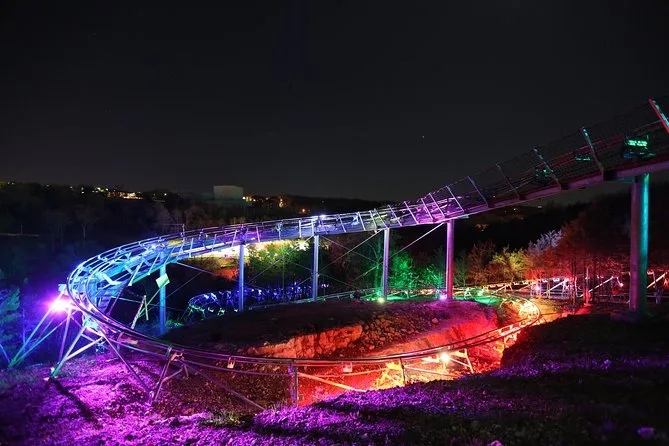 Spüre, wie dir der Magen in den Keller rutscht, wenn dich die Schwerkraft auf Bransons Alpine Mountain Coaster durch echte Ozark-Wälder zieht – ganz in deinem Tempo. Ticket und alle Gebühren sind inklusive, dazu gibt’s eine kurze Einweisung vom Team, bevor du den Hang mit Wind im Haar und lachend herunterrast.