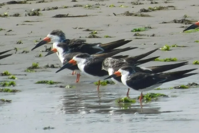 Dein Abend beinhaltet eine zweistündige Öko-Bootstour durch die Küsten-Salzmarschen von Cape May hinter Wildwood mit nahen Einblicken auf seltene Feuchtgebietsvögel und Meereslebewesen; für alle Gäste gibt es Ferngläser, damit du unterwegs nichts verpasst, bevor du bei einbrechender Dämmerung zurück ans Ufer fährst.