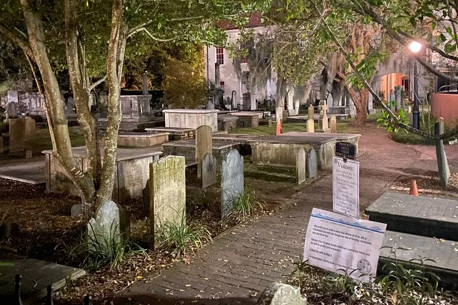 Dein Abend beinhaltet einen 90-minütigen Rundgang mit einem lizenzierten Stadtführer durch verlassene Verliese, Friedhöfe, Kirchen wie St. Philips und St. Michael's, unheimliche Gassen und sogar Pubs – dazu echte Geschichten aus 350 Jahren Charleston in einer kleinen, persönlichen Gruppe.
