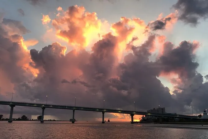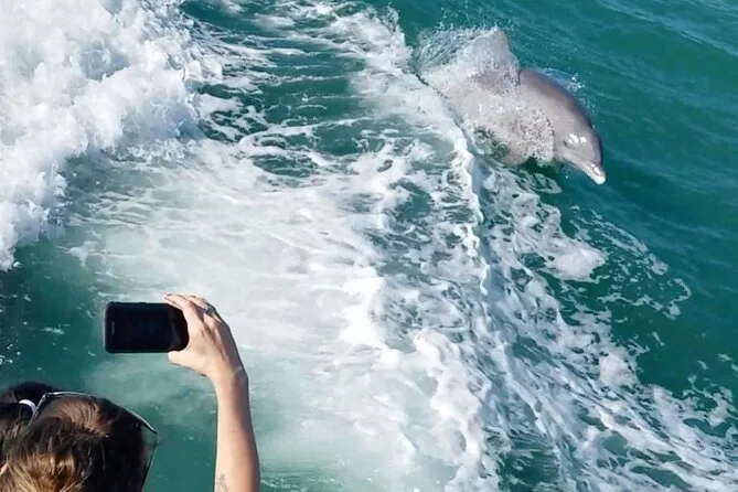 Dein Erlebnis umfasst eine einstündige kommentierte Bootstour auf Clearwater Beach mit einem Hai-Boot, das sowohl schattige als auch sonnige Sitzplätze bietet, eine Toilette an Bord, sowie die Möglichkeit, eigene Snacks und Getränke (keine Glasflaschen) mitzubringen. Lokale Guides erzählen spannende Geschichten, während du Delfine im Bootssog beobachten kannst, bevor es zurück ans Ufer geht.