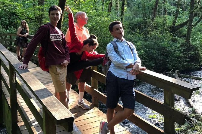 Du radelst auf historischen Straßen durch die Columbia River Gorge, wanderst zu Wasserfällen wie Multnomah Falls und Latourell Falls und hörst unterwegs spannende Geschichten von deinem Guide. Nebelige Luft, matschige Stiefel, Lachen mit neuen Freunden – und Momente, in denen Oregons wilde Schönheit dich einfach sprachlos macht.