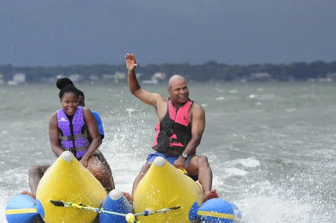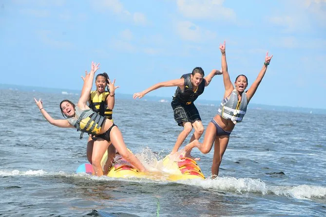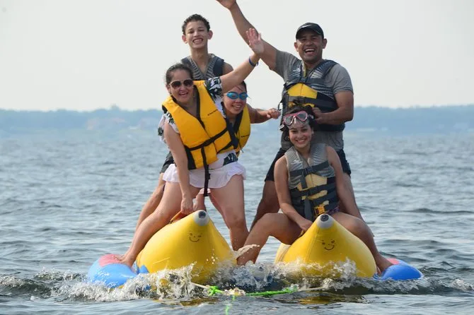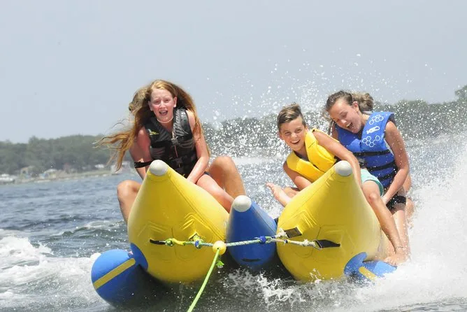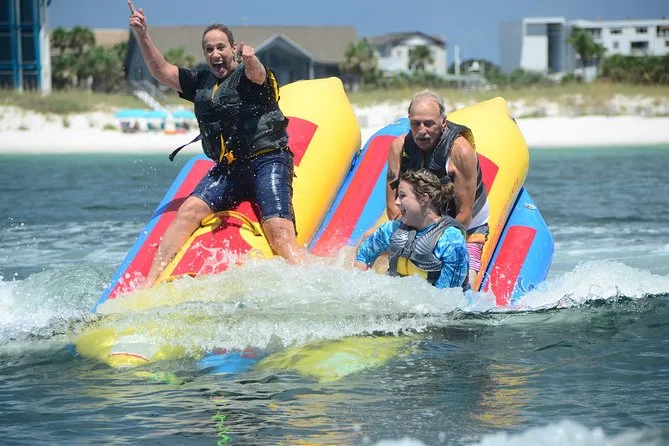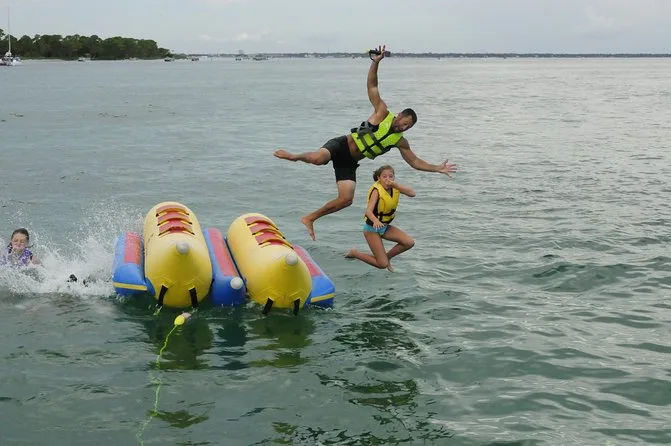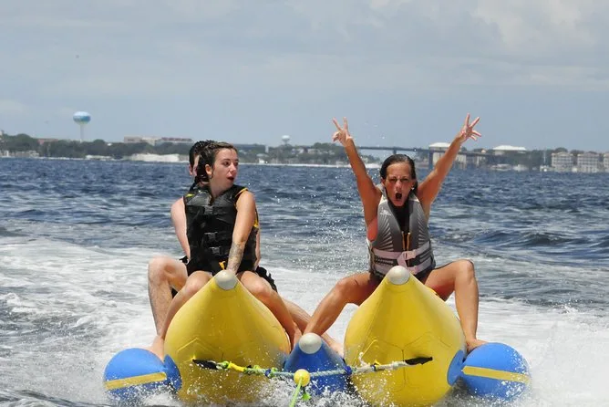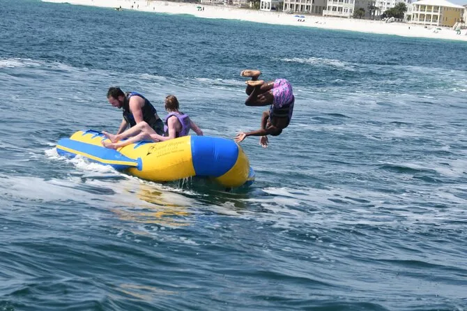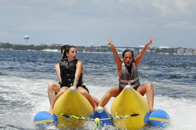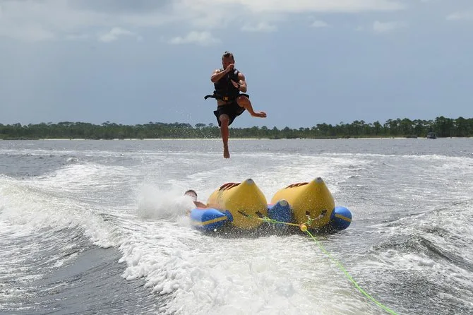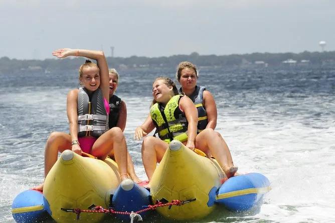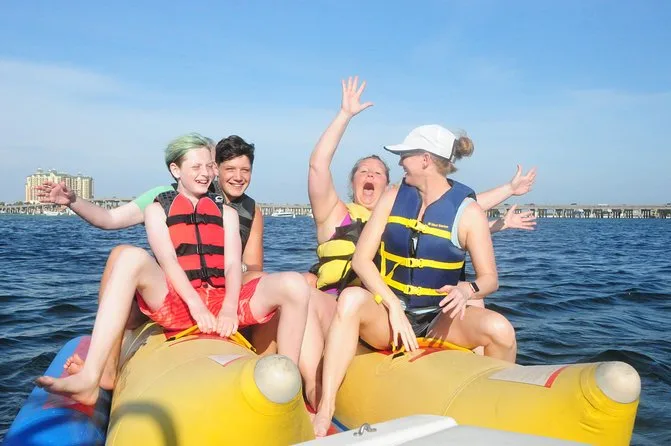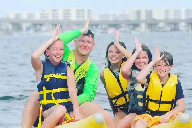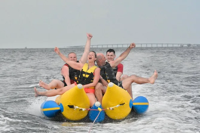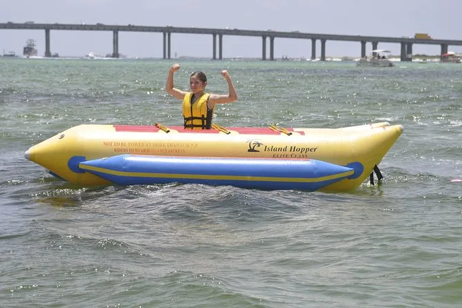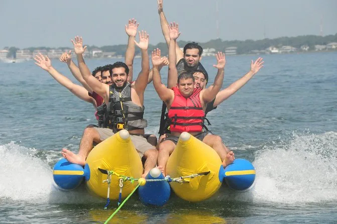 Dein Tag beinhaltet eine lebhafte Banana-Boot Fahrt mit Motorboot im Golf von Destin oder der Choctawhatchee Bay, alle nötigen Schwimmwesten werden von einer lustigen lokalen Crew gestellt, die dich von Anfang bis Ende zum Lachen bringt, bevor ihr gemeinsam zurück ans Ufer fahrt.