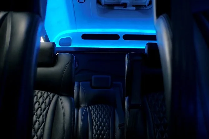Deine Fahrt beinhaltet einen professionellen lokalen Fahrer, Abholung und Rückfahrt vom Hotel oder Wunschort, Wasserflaschen, WLAN, Smart TV, hochwertiges Soundsystem und viel Platz für deine Gruppe. Kindersitze können wir bei Bedarf bereitstellen – einfach rechtzeitig Bescheid geben!