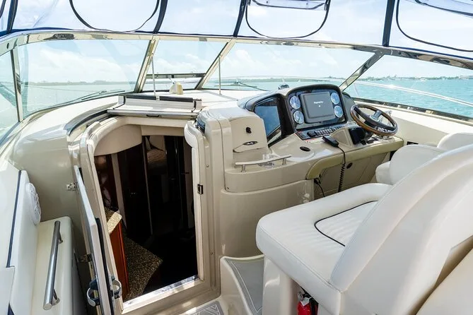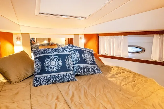 Dein Tag umfasst die Nutzung der Sundancer 40 Yacht mit schattigen Sitzplätzen und Zugang zum Sonnendeck, Treibstoffzuschlag, Kühlboxen mit Eis und Wasser (BYOB möglich), Liegegebühren sowie Zugang zu Wasser-Matten bei Buchungen ab vier Stunden – so könnt ihr nach Herzenslust schwimmen oder entspannen, bevor ihr gemeinsam zurück an Land fahrt.