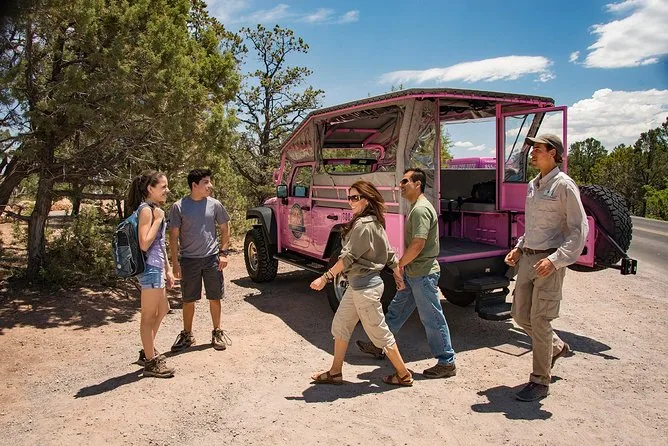 Erlebe eine offene Jeep-Tour am Grand Canyon South Rim mit einem lokalen Guide, der dir Geschichten erzählt, die du sonst nirgends hörst. Halte an Panorama-Aussichtspunkten wie dem Grandview Point für Fotos und stille Momente über den endlosen Klippen. Zum Abschluss gibt’s ein Ticket für den IMAX-Film in Tusayan – mehr als nur Erinnerungsfotos im Gepäck.