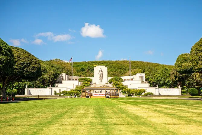Die Route hält am Iolani Palace, Punchbowl Crater und dem Hafen von Honolulu.
