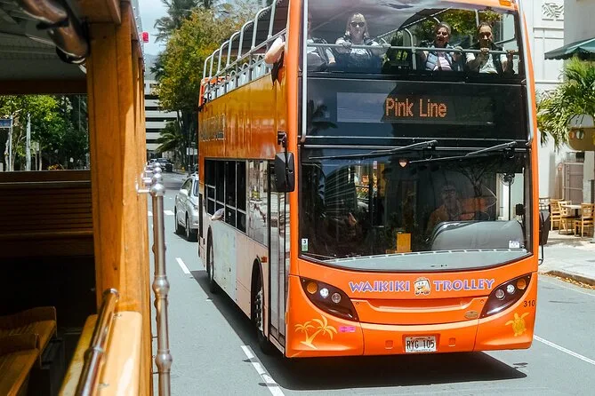 Dein Tag beinhaltet unbegrenztes Ein- und Aussteigen auf der Waikiki Trolley Red Line mit Stopps an Sehenswürdigkeiten wie dem Iolani Palace und Punchbowl Crater; Erzählungen von einem lokalen Guide; volle Barrierefreiheit; und die Freiheit, jeden Stopp in deinem Tempo zu erkunden und zurückzukehren, wann immer du willst.