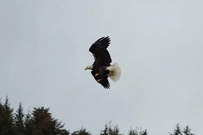 Dein Tag beginnt mit Limousinenabholung und -rückfahrt direkt vor deinem Kreuzfahrtschiff in Icy Strait Point, dann geht’s bequem zum Hafen von Hoonah zum Einsteigen in einen beheizten Katamaran mit bequemen Sitzbänken und Toilette. Ein lokaler Kapitän begleitet deine kleine Gruppe die ganze Zeit, dazu gibt’s Snacks und alle Gebühren sind inklusive – denk nur daran, 30 Minuten vor Abfahrt da zu sein, damit du deinen Platz sicher hast.