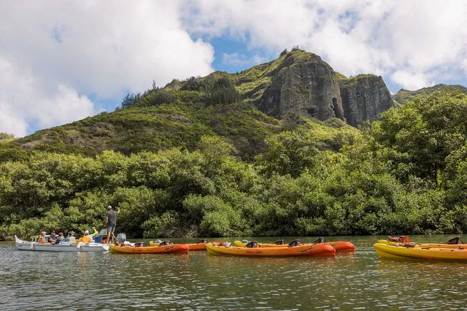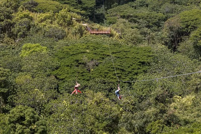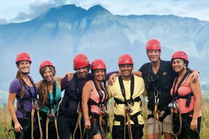 Dein Tag umfasst eine leichte 3,2 km Kajaktour auf dem Hule’ia River in hochwertigen Tandemkajaks mit lokalen Guides; eine Drybag für deine Sachen; eine kurze Wanderung zu Wasserfällen zum Schwimmen oder Seilschwingen; zwei große Ziplines plus den WaterZip-Splashdown; kaltes Quellwasser und Säfte; ein einfaches Picknick mit Truthahnsandwich und Snacks – alle Gebühren sind inklusive, bevor es mit dem motorisierten Kanu zurückgeht.