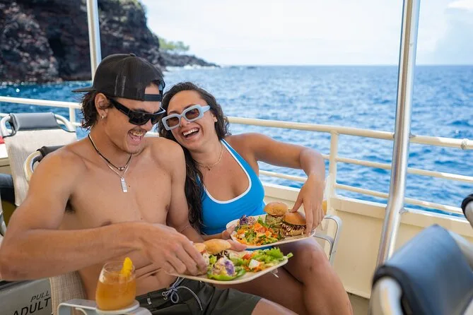 Dein Tag beginnt mit dem Ablegen von Keauhou Bay, begleitet von einem zertifizierten Rettungsschwimmer-Team aus Einheimischen. Du bekommst Schnorchel-Ausrüstung und Stand-up-Paddleboards, reef-safe Mineral-Sonnencreme, frische Duschen an Bord, zwei besondere Schnorchelspots je nach Wetter (z.B. Kealakekua Bay oder Rob’s Reef) sowie ein tropisches, pflanzliches Frühstück und Mittagessen zwischen den Schwimmgängen, bevor es zurück zum Hafen geht.