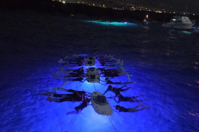 Dein Abend beginnt mit einer entspannten Bootsfahrt ab Honokohau Hafen, geführt von erfahrenen Einheimischen, die dich zu den besten Mantarochen-Spots bei Kona bringen. Die komplette Schnorchelausrüstung – Maske, Neoprenjacke und Schwimmnudel – ist inklusive, ebenso wie Wasser und Snacks an Bord, bevor es unter dem Sternenhimmel zurückgeht.