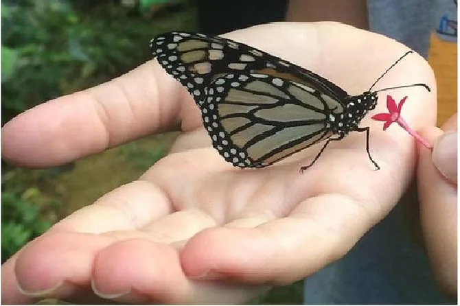 Du besuchst die Zuchtanlage, fütterst Schmetterlinge im Flughaus und erfährst alles über Zucht und Forschung.