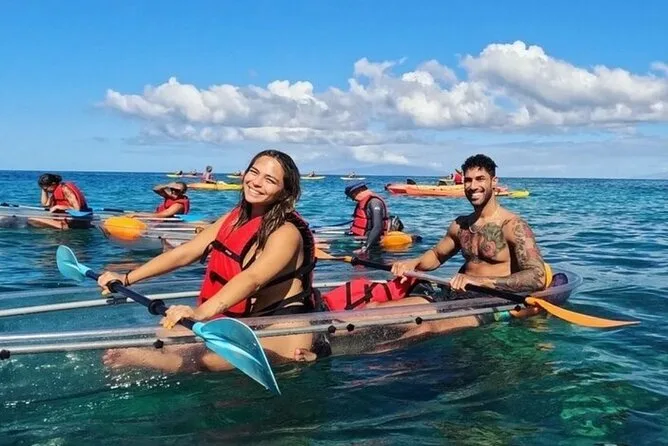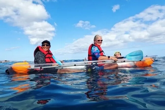 Wir trafen uns bei Turtle Town in Makena, gerade als das erste Licht das Wasser sanft erhellte – ich roch Sonnencreme und Kaffee aus einer Thermoskanne, was mich sofort zum Lächeln brachte. Unser Guide Kai verteilte die Kajaks mit klarem Boden (so etwas hatte ich vorher noch nie gesehen) und erklärte uns ganz entspannt die Sicherheitsregeln – ohne dass es sich wie eine langweilige Ansage anfühlte. Die Stimmung war locker und familiär – wahrscheinlich, weil die Tour von Einheimischen geführt wird? Ich war etwas nervös, weil ich kein geübter Kajakfahrer bin, aber Kai meinte, die meisten sind es nicht. Er erzählte sogar scherzhaft von seinem ersten Kenterer – das hat mich zwar nicht beruhigt, aber zum Lachen gebracht.