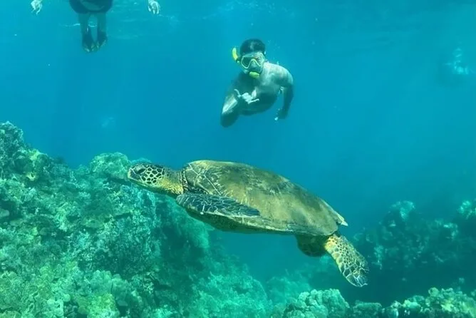 Du paddelst mit Kajaks mit klarem Boden über Makenas Riffe bei Turtle Town, begleitet von lokalen Guides, die jeden Lavafinger und Schildkrötenplatz kennen. Schnorchle zwischen tropischen Fischen oder genieße den Blick durch den Kajakboden. Die morgendliche Ruhe macht alles intensiver – selbst der Geschmack des Salzwassers bleibt dir lange im Gedächtnis.