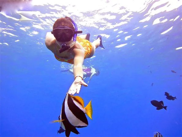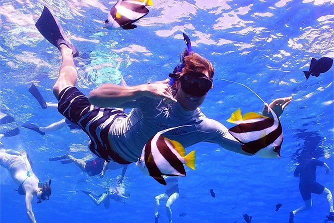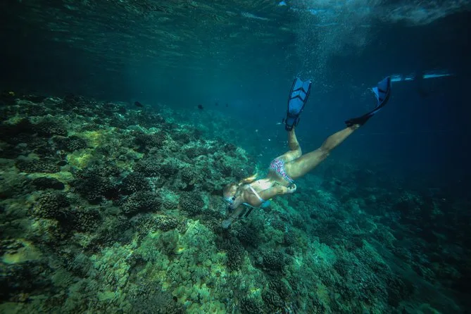 Die Fahrt dorthin war schneller als gedacht für so ein großes Boot. Man roch die Mischung aus Sonnencreme, salziger Luft und frischen Backwaren. Unsere Guide (ich glaube, sie hieß Jess?) sagte, wir sollten nach fliegenden Fischen Ausschau halten – tatsächlich sah ich kurz vor dem Ankern am Molokini-Krater einen vorbeihüpfen. Ins Wasser zu kommen dauerte bei mir einen Moment; meine Maske beschlug und ich schluckte gleich mal etwas Meerwasser. Aber dann schaust du nach unten und es fühlt sich an, als schwimmst du durch ein Kaleidoskop – kleine gelbe Fische, die überall herumsausen, Korallen, die wie gemalt wirken. Jemand rief „Aal!“, und halb wir lachten nervös auf (der war winzig). Auch wenn du kein sicherer Schwimmer bist, gibt’s überall Schwimmhilfen und Schwimmnudeln, sodass du dir keine Sorgen machen musst.