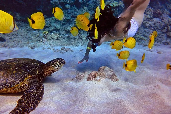 Die Tour startet um 7:30 Uhr im Ma’alaea Hafen; rechne mit mehreren Stunden inklusive Stopps am Molokini-Krater und Turtle Town, Rückkehr gegen Mittag.