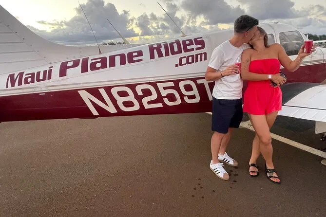 Dein Abend beginnt mit VIP-Zugang zum Privatflugbereich des Kahului Airports, wo dein Pilot dich an Bord eines komfortablen Metallflugzeugs mit Panoramafenstern begrüßt. Du erhältst Kopfhörer für den klaren Live-Kommentar während des gesamten Flugs, die Landegebühren sind inklusive – und mittendrin gibt’s ein Glas Champagner, während du den Sonnenuntergang über Mauis Küste genießt, bevor ihr gemeinsam wieder landet.
